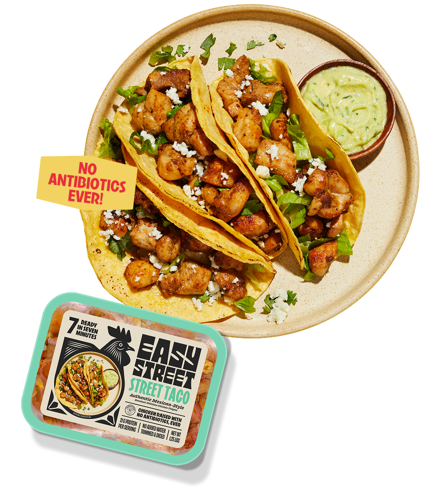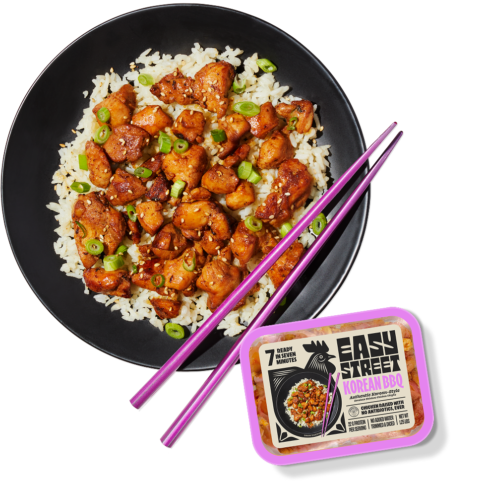 Introducing Easy Street: Pre-trimmed, pre-diced, pre-seasoned (dry-rub marinated) fresh chicken that goes pack-to-pan-to-plate in 7 minutes!